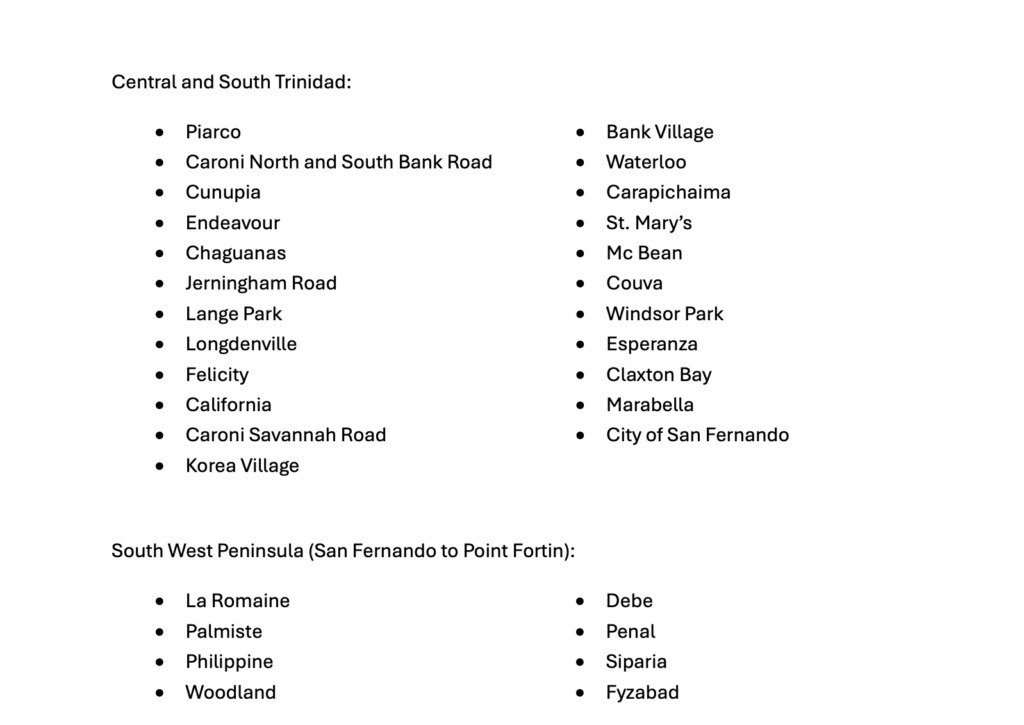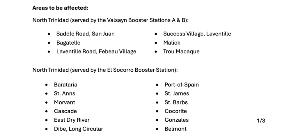 The Water and Sewerage Authority (WASA) has advised the national community of a temporary reduction in production at the Caroni Arena Water Treatment Plant on Thursday, 9th April, 2026, between the hours of 6:00 a.m. and 12:00 noon.